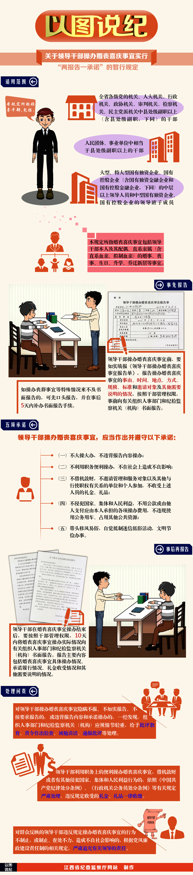 為進(jìn)一步讓全省廣大黨員干部特別是領(lǐng)導(dǎo)干部知紀(jì)、明紀(jì)、守紀(jì),增強(qiáng)紀(jì)律和規(guī)矩意識(shí),切實(shí)落實(shí)“把紀(jì)律挺在前面”要求,江西省紀(jì)委監(jiān)察廳網(wǎng)站推出《以圖說紀(jì)》欄目,以圖文形式解讀本省加強(qiáng)干部隊(duì)伍作風(fēng)建設(shè)、促進(jìn)領(lǐng)導(dǎo)干部廉潔自律等方面的有關(guān)規(guī)定。